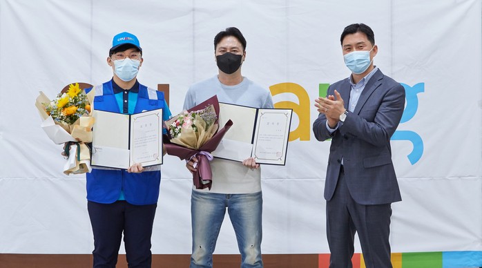 27일 오후 쿠팡 인천 캠프에서 열린 시상식에서 쿠팡 HR부문 최인석 상무는 헌신적인 노력으로 고객과 지역사회의 안전에 기여한 최씨의 공로를 치하했다.