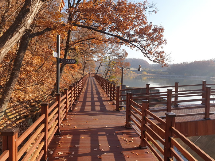 신대호수 산책로 전체 구간은 약 4.4km이다. 호수 풍경을 감상하며 1시간 정도 걸으면 산책로를 다 둘러볼 수 있다.