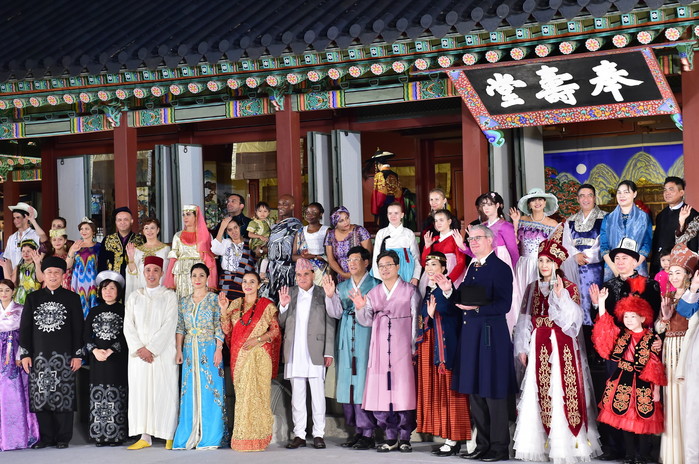 | ▲2017년 세계의상페스티벌 참가자들이 기념촬영을 하고 있다. |
