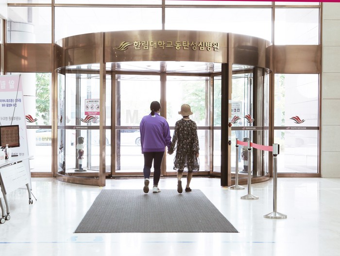 ▲손을 잡고 병원 문을 나서는 모녀. |