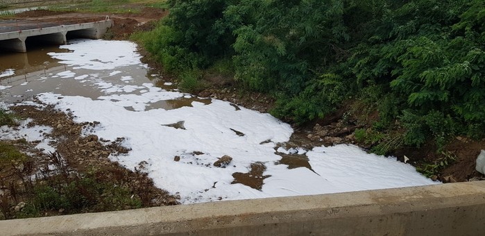 | ▲세제 원료 무단방류로 오염된 하천.(화성시 제공) |