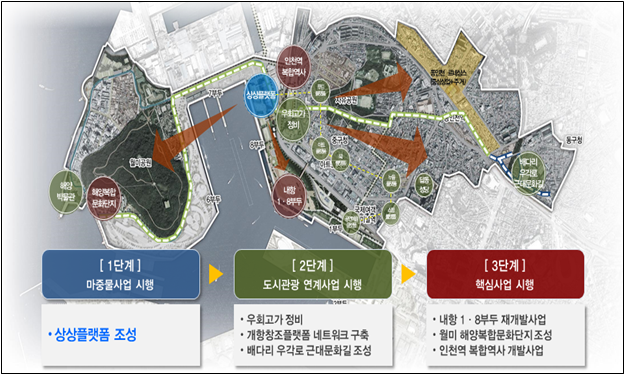 더 나아가 한국철도공사, 한국토지주택공사, 인천항만공사, 인천도시공사 등 유관기관과 유기적인 협업체계를 구축하여 인천역 복합역사 개발과 내항1·8부두 항만재개발사업 등 민간투자사업을 촉진할 계획이다. 이를 통해 그 동안 항만기능과 공공기관 이전에 따라 공동화되고 있는 지역의 경제를 되살려 옛 원도심의 명성을 되찾고 해양문화관광 도시로 도약할 수 있도록 추진해 나갈 계획이다.