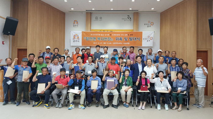 [로컬세계 송요기 기자]충남 공주시 정안면이 지난 27일 정안면사무소 대회의실에서 찾아가는 맞춤형복지의 일환으로 정안면 32개 마을 반장 107명을 복지반장으로 위촉하고 ‘마을 행복지킴이 복지반장’ 발대식을 가졌다고 28일 밝혔다.