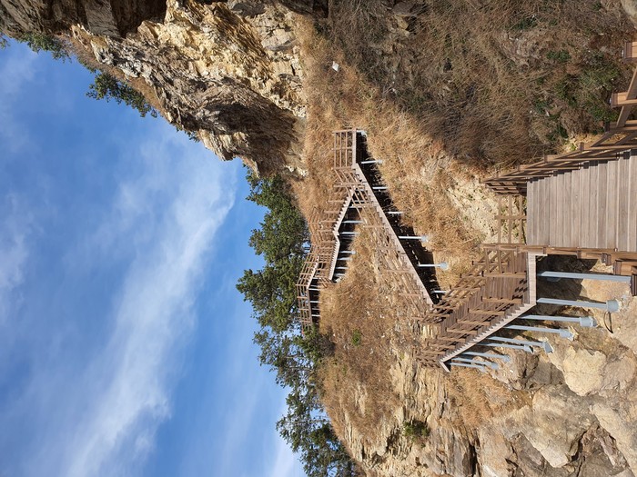 방축도에 들어서면 출렁다리까지 데크길을 통해 트래킹을 할 수 있으며, 출렁다리 위에서는 고군산군도의 명물인 독립문 바위 등 옥도면 말도리의 수려한 경관이 펼쳐진다.