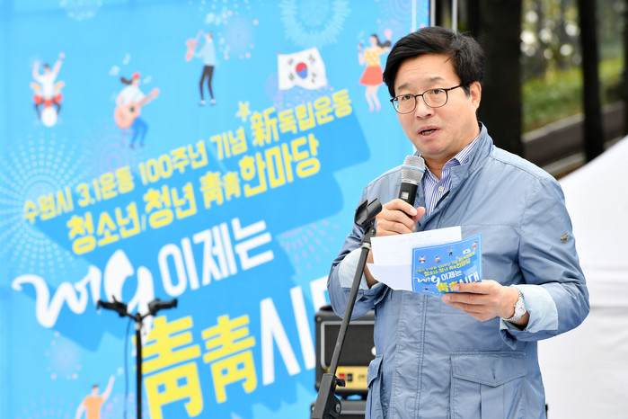 행사에 참석한 염태영 수원시장은 “나라가 어려울 때 이 땅을 진정으로 지켰던 이들은, 여러분과 똑같은 청소년, 청년들, 평범한 시민들이었다”고 강조하며 “100년 전에도, 지금도 나라와 도시를 이끌어갈 주인공은 청년과 청소년”이라고 말했다.