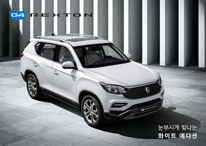 화이트 에디션은 유라시아 에디션에 이어 두 번째로 선보이는 G4 렉스턴의 스페셜 에디션으로, 이름이 나타내듯 프리미엄 모델의 품격을 보여 주는 화이트컬러를 내외관에 채택하고 4TRONIC 시스템과 럭셔리한 편의사양들을 기본 적용해 상품성을 높였다.