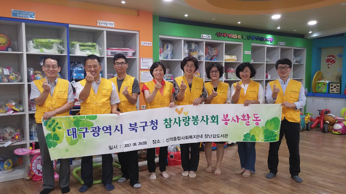 참사랑 봉사단(단원 58명)은 북구청 직원으로 구성된 봉사단으로 매달 산격종합사회복지관 내 희망장난감도서관(북구 산격동 소재)을 방문해 장난감 소독 및 도서관 내부를 청소하는 봉사활동을 실시하고 있다.