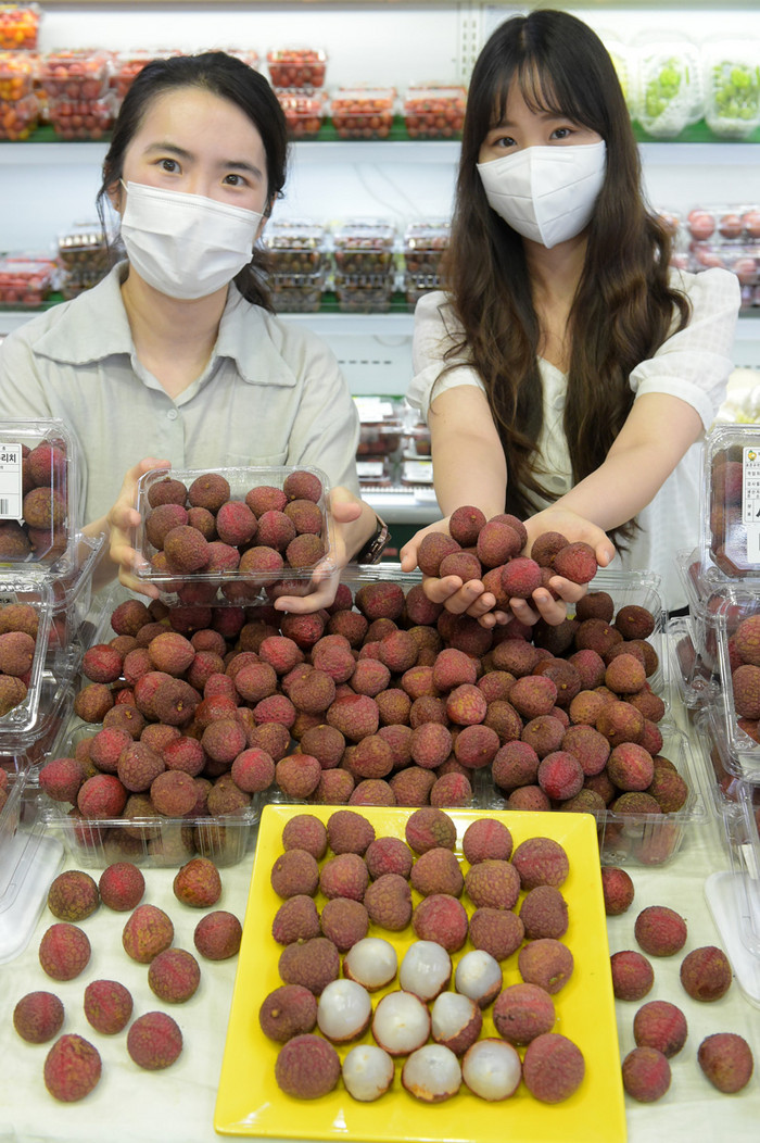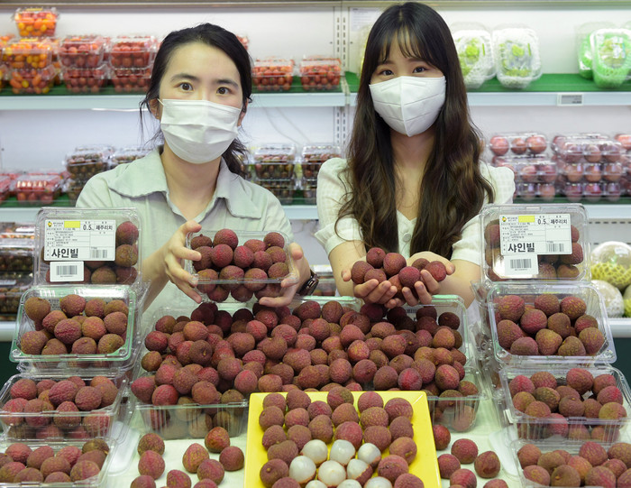 | ▲22일 서울 서초구 농협 하나로마트 양재점에서 모델들이 대한민국 최초로 선보인 국내산 생과일 ‘리치’를 소개하고 있다. 농협유통 제공 |