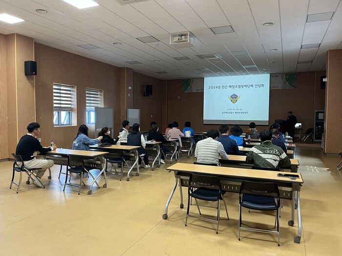 [로컬세계 = 양해수 기자]전북 군산해양경찰서는 26일 오전 10시 군산시 자원봉사센터에서 민간 해양오염방제단체(해양오염방제 자원봉사자 및 명예해양환경감시원) 30명이 모인 가운데 깨끗한 군산 바다를 만들기 위한 방안을 논의했다고 밝혔다.