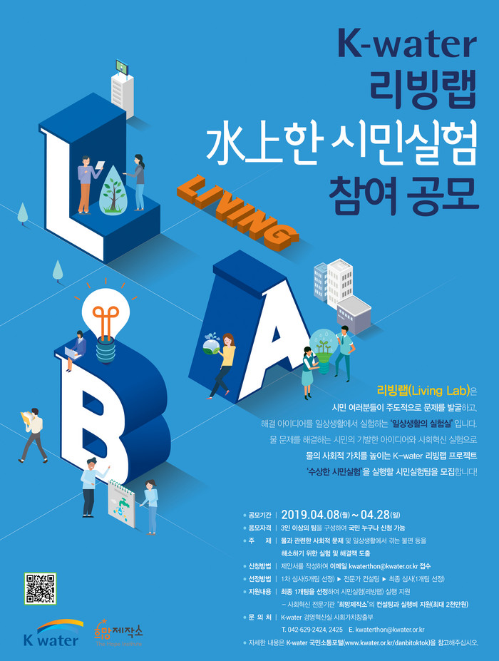 공모 분야는 ▲수질오염 ▲물 소외지역 ▲물 부족 문제 ▲안심하고 수돗물 마시기 ▲기타 물 관련 제안 등 물과 관련한 사회적 문제 혹은 일상생활에서 겪는 불편 등을 해결하기 위한 5개 분야다.