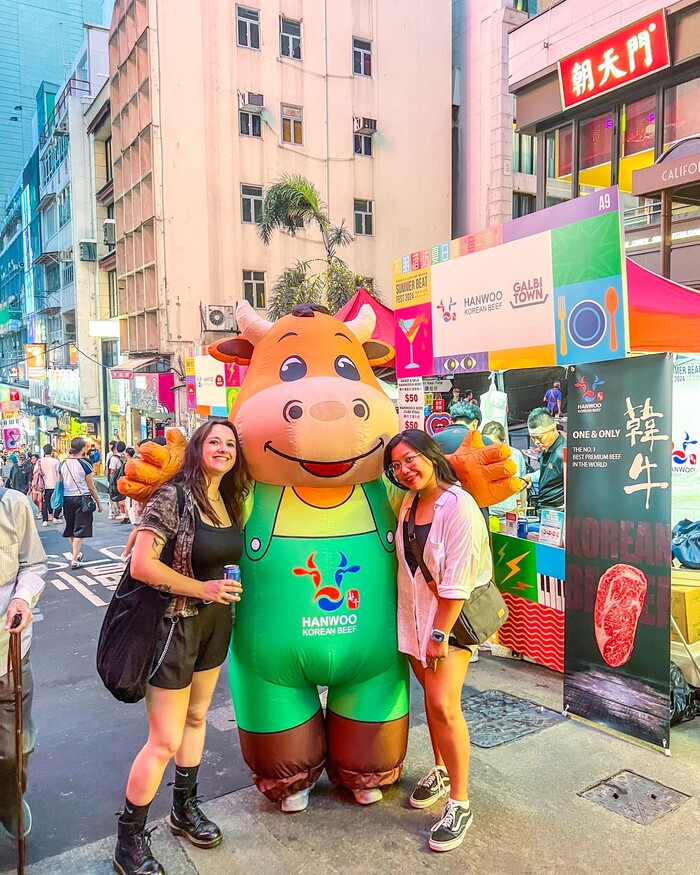 ▲란콰이펑 Summer Beat Fest 2024의 한우부스 앞에서 한우버거와 함께 인증사진을 찍고 있는 외국인의 모습. |