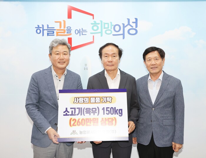 [로컬세계=박상진 기자]경북 의성군은 지난 12일 농업회사법인 목원(주)에서 사회복지 생활시설 3곳에 전달해달라며 소고기(육우) 150kg(260만원 상당)를 기탁했다고 13일 밝혔다.