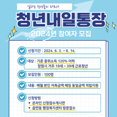 [로컬세계 창원=정판주 기자] 창원특례시는 지역 청년들의 경제적 자립기반 마련을 위해 2024년 창원시 「청년내일통장」 참여자를 모집한다고 31일 밝혔다.