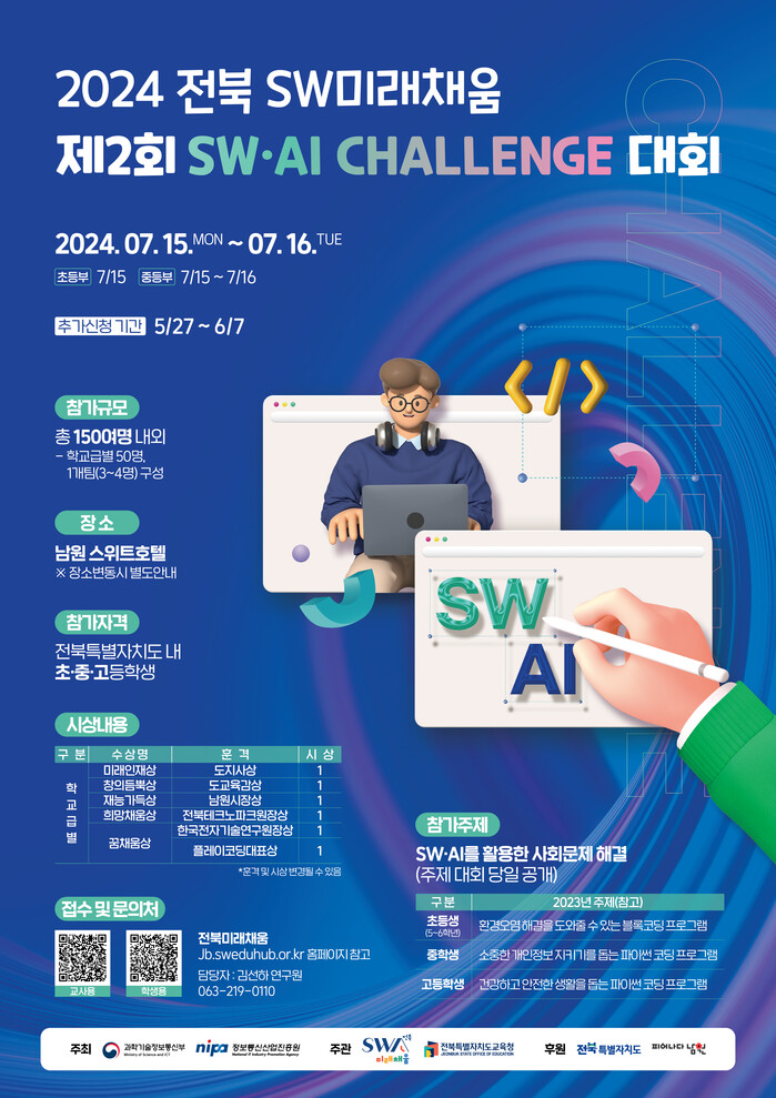 작년에 이어 두 번째로 열리는 이번 대회는 과학기술정보통신부와 정보통신산업진흥원(NIPA)이 주최하고, 전북 SW미래채움센터와 전북특별자치도교육청이 공동주관하며 전북특별자치도, 남원시가 후원하는 대회이다.