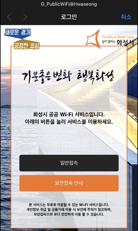 | ▲화성시 공공와이파이 접속 메인 화면. |