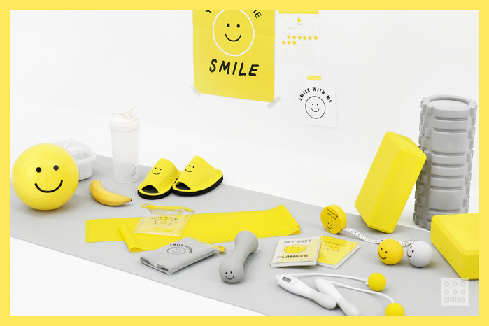 헬스용품은 ‘스마일’이라는 디자인 컨셉이 특징이다. 상품 패키지나 상품에 노란색 바탕으로 웃는 얼굴이 그려져 있어, 운동을 다짐하는 사람들을 응원하는 느낌으로 디자인 돼 있다. ‘스마일 디지털카운트 줄넘기’는 줄이 짧은 형태의 줄넘기로 실내에서 운동을 할 수 있으며, 줄넘기에 운동한 횟수를 기록해주는 장치가 같이 되어 있어, 내가 얼마나 운동을 했는지 체크해준다. 운동에 빠질 수 없는 아령은 1kg, 2kg로 출시되어 가벼운 운동을 할 때 적당하고 스마일 모양의 디자인으로 되어있어 귀여운 느낌을 준다.