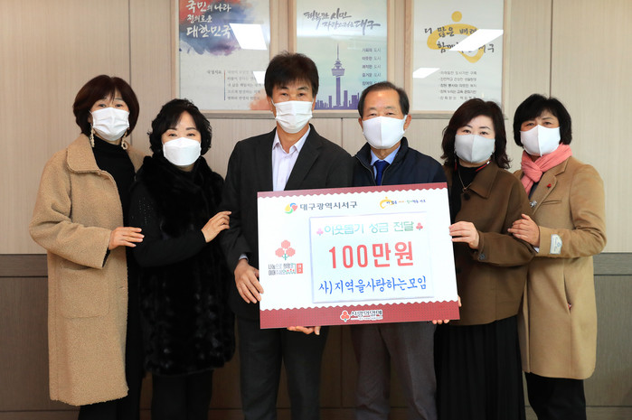 [로컬세계 박세환 기자]대구 서구 (사)지역을 사랑하는 모임(단장 지용수)은 지난 9일 서구청을 방문해 주변의 어려운 이웃을 위해 써달라며 이웃돕기 성금 100만원을 전달했다.