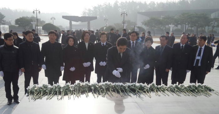더불어민주당 광주광역시당 및 전남도당이 합동으로 실시한 이날 참배에는 김성곤 전남도당 위원장, 박혜자 광주시당 위원장을 비롯한 박지원 의원, 우윤근 의원, 이개호 의원, 강기정 의원, 신정훈 의원, 장병완 의원, 김승남 의원, 이윤석 의원 등이 참석했으며 송대수 예비후보를 비롯한 100여명의 더불어민주당 당원들이 함께했다.