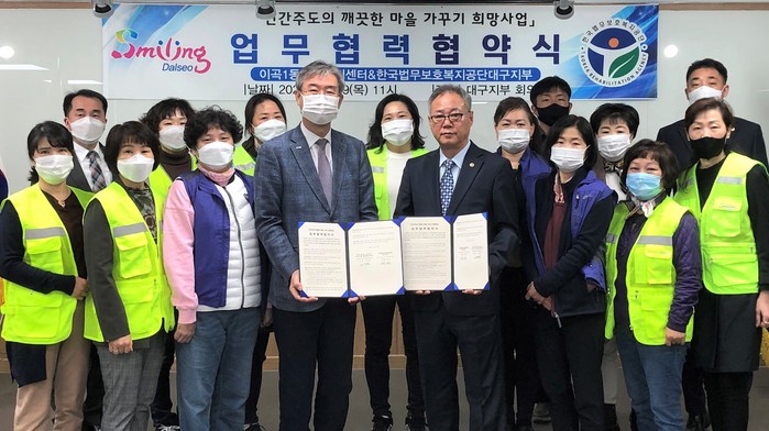 [로컬세계 박세환 기자]대구 달서구 이곡1동은 지난 29일 한국법무보호복지공단 대구지부(지부장 박승익)와 ‘민간주도의 깨끗한 마을 가꾸기 희망사업’ 업무협약을 체결했다고 30일 밝혔다.