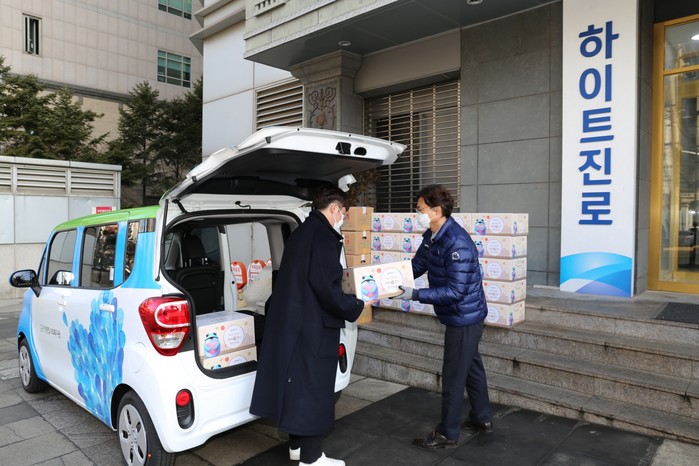 하이트진로(대표 김인규)는 임인년 설 명절을 앞두고 지역사회의 어려운 이웃들을 위해 명절 음식을 후원한다고 25일 밝혔다. 의정부 녹양종합사회복지관, 양평군종합사회복지관 등 전국 30개 사회복지기관에 떡국과 설렁탕 7000인분을 지원한다. 이를 위해 하이트진로 서초사옥 앞에서 최소 인원으로 전달식을 진행했다.