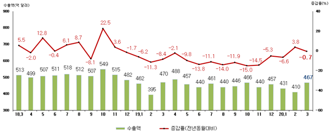| ▲월별 수출액 및 증감률. |