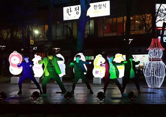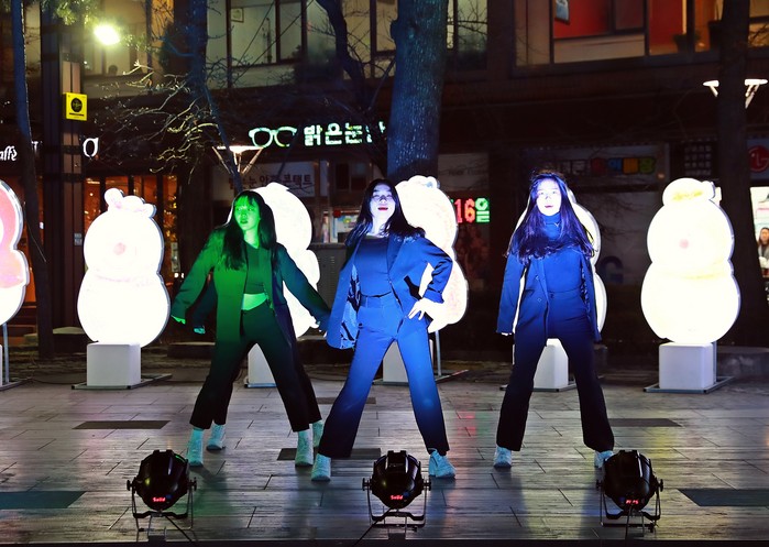 지난 18일 강원 태백시 황지연못에서 제27회 태백산 눈축제 일환으로 야간공연이 펼쳐지고 있다.(사진=태백시 제공)