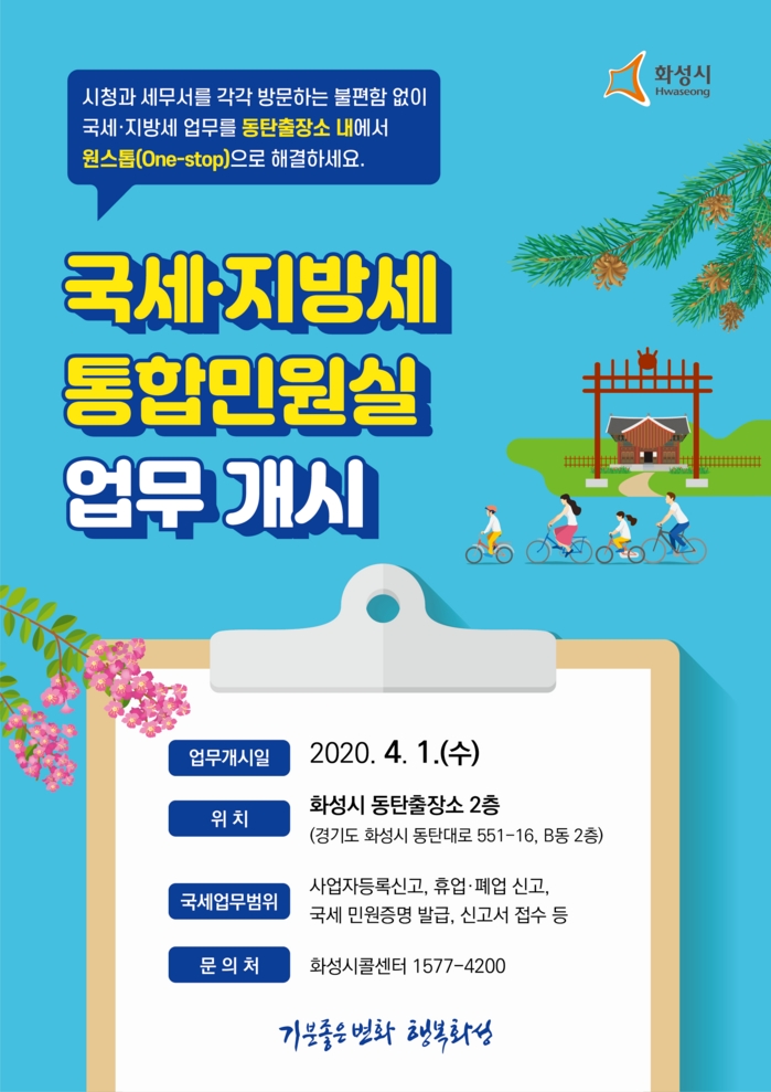 안추원 동탄출장소장은 “멀리 세무서를 찾아야 했던 시민들의 경제적, 시간적 부담을 줄여줄 수 있을 것”이라며, “앞으로도 유관기관과 협력해 만족도 높은 행정서비스를 제공할 수 있도록 노력하겠다”고 말했다.
