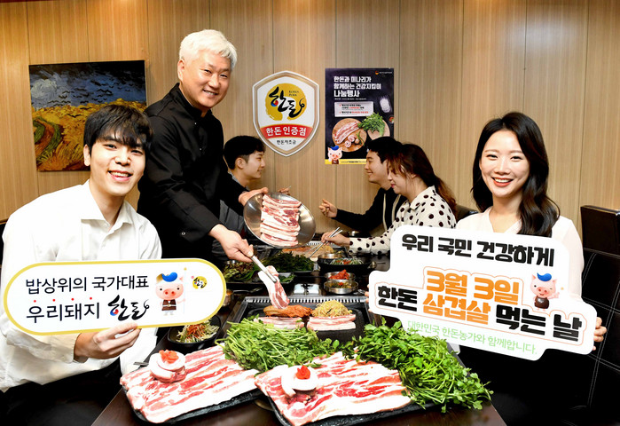 | ▲한돈자조금에서는 소비자들이 건강하고 부담 없는 삼겹살데이를 보낼 수 있도록 다양한 온오프라인 이벤트를 실시한다. 오프라인에서는 한돈인증점이 주메뉴 할인과 미나리를 제공하는 나눔행사를, 온라인에서는 한돈몰 및 온라인 마켓에서 한돈 상품을 파격 할인하는 행사를 진행한다.(한돈자조금 제공) |