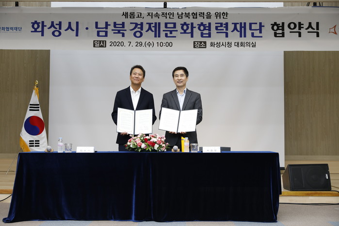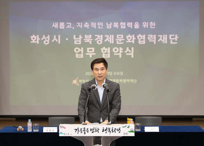 [로컬세계 고용주 기자]경기 화성시가 29일 (사)남북경제문화협력재단과 ‘새롭고 지속가능한 남북협력을 위한 업무협약’을 체결하고 남북 도시 간 교류협력의 기틀을 마련했다.