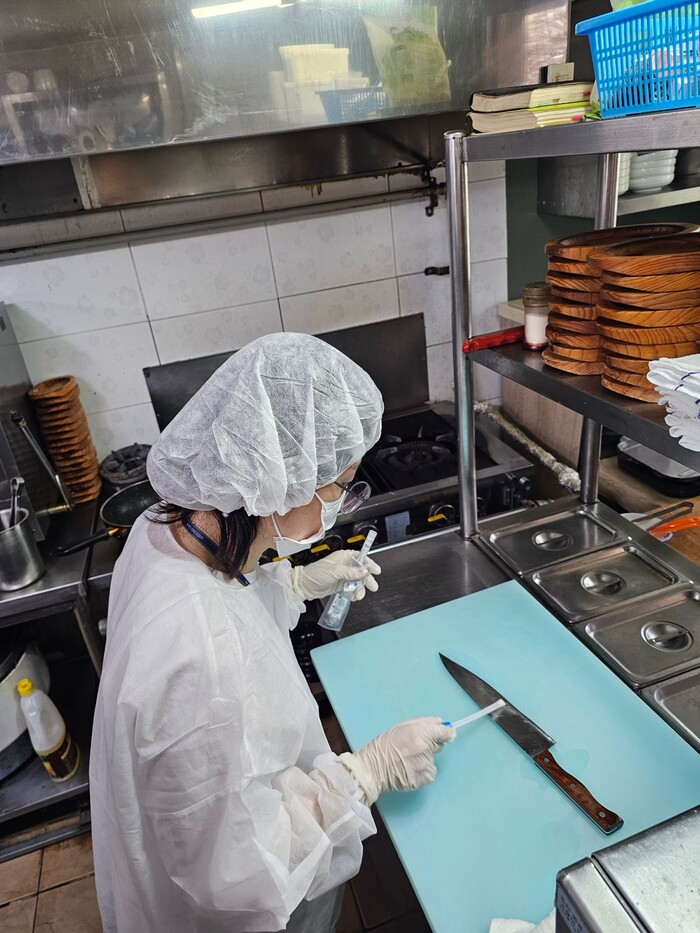 대상은 여름철 식중독 발생 위험이 높은 음식인 회, 김밥 취급업소 23개소 및 집단급식소 20개소의 조리도구이며, 검사 항목은 칼·도마의 경우 살모넬라·대장균, 행주는 대장균 검사가 이루어졌다.