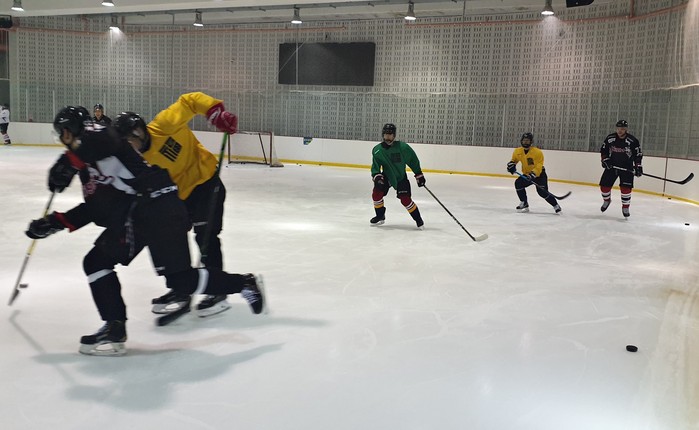 | ▲지난 6일 주니어캠프에서 연습경기를 하고 있는 고등학교 아이스하키 선수들.(강원랜드 제공) |