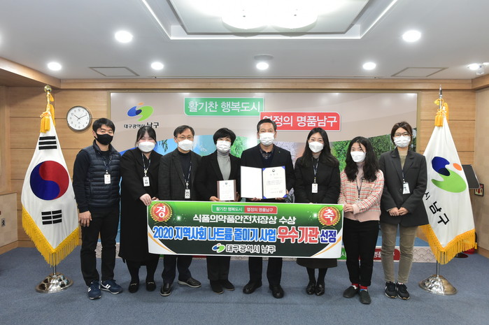 [로컬세계 박세환 기자]대구 남구청은 지난해 12월 30일, 건강위해가능 영양성분(나트륨) 저감 확산 유공으로 ‘2020년 지역사회 나트륨 줄이기 사업’ 우수기관으로 선정돼 식품의약품안전처장상을 수상했다고 4일 밝혔다.