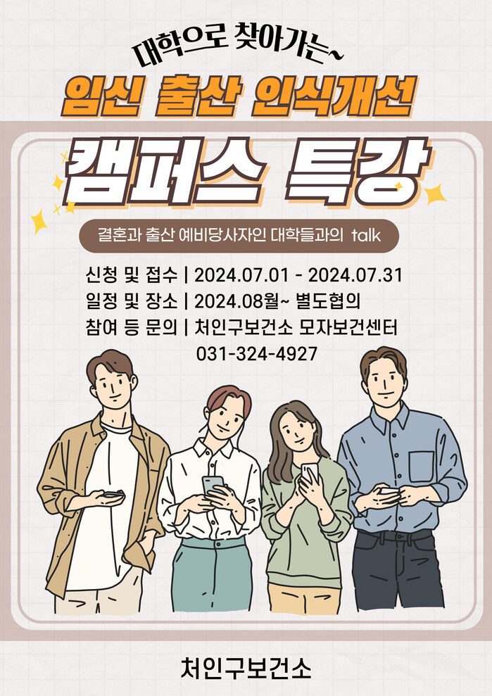 이 특강은 처인구보건소가 저출산 문제를 해결하기 위해 마련한 시책 발굴 신규 사업이다. 대학생에게 결혼과 임신, 출산에 대해 긍정적인 인식을 심어주고, 공감대 형성을 주요 내용으로 다룬다.