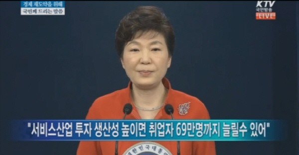 박 대통령은 이날 오전 10시 청와대 춘추관에서 발표한 담화문 ‘경제재도약을 위해 국민 여러분께 드리는 말씀’을 통해 “우리나라가 세계경제의 주역으로 다시 한 번 도약하기 위해서는 경제 전반에 대한 대수술이 불가피하다”고 이와 같이 말했다.