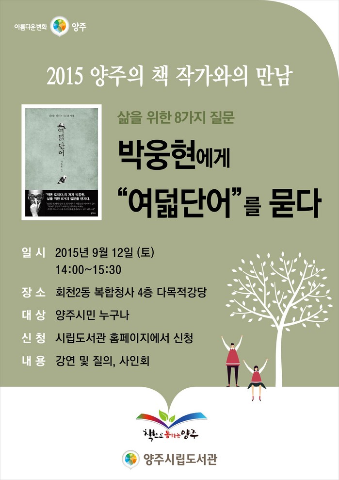 강연회에 참여를 원하는 사람은 시립도서관 홈페이지(www.libyj.go.kr)를 통해 신청이 가능하며, 기타 궁금한 사항은 시립도서관 도서관정책팀(031-8082-7418)으로 문의하면 된다.