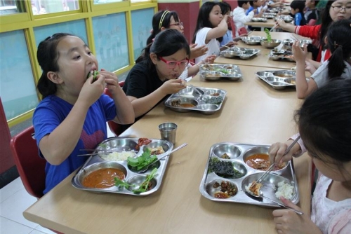 ▲전북지역 초등학생들이 급식을 먹고 있다. 전북도가 17개 광역 시도 가운데 급식률이 가장 높은 것으로 나타났다. |