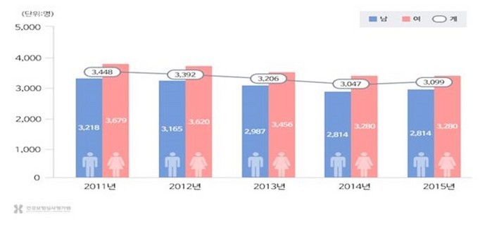 최근 5년간(2011년~2015년) 진료 추이를 살펴보면 매년 150만명 이상의 진료인원이 발생하고 있으며 지난해에는 약 158만명이 진료를 받았다.
