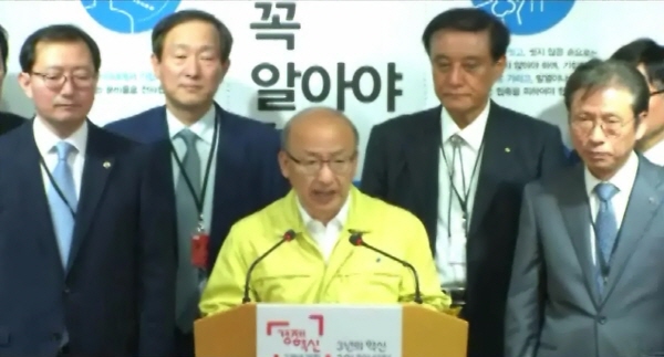 ▲ 문형표 복지부 장관이 지난 11일 오후 세종 제3공용브리핑실에서 국민안심병원 관련 브리핑을 하고 있다. <사진출처=e-브리핑 화면캡처> |