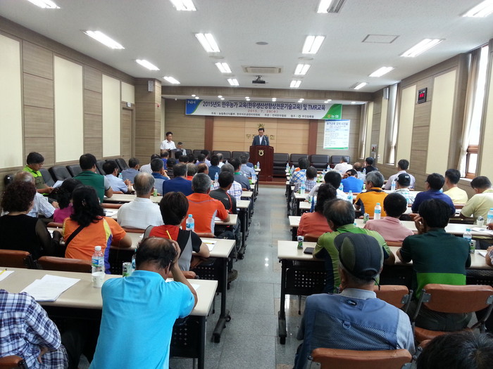 ▲한우농가 관계자들이 ‘한우생산성향상전문기술’ 교육을 받고 있다. |