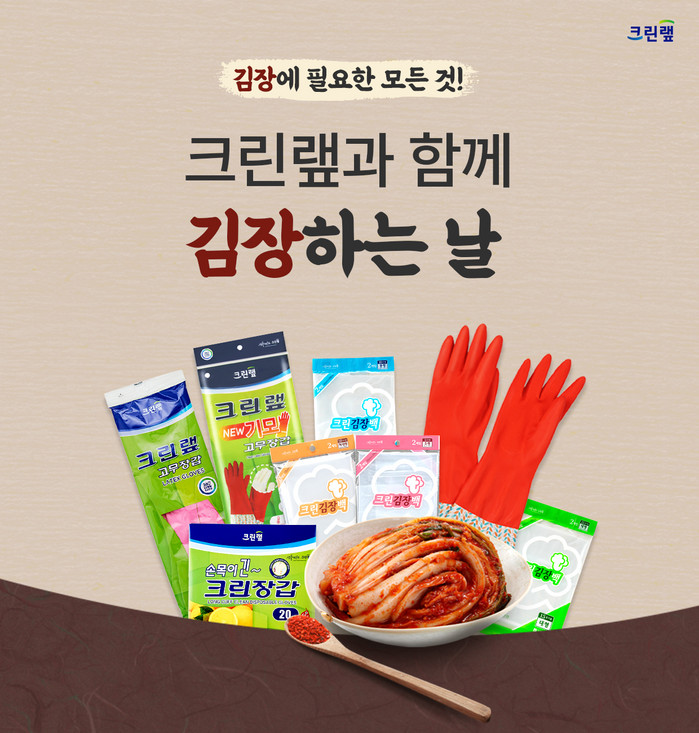 생활용품 기업 크린랲(대표 승문수)이 김장철을 맞아 고무장갑, 위생장갑, 김장백 등 김장용품을 판매하는 ‘김장하는 날’ 기획전을 진행한다고 밝혔다. 이번 김장 기획전은 11월 30일까지 진행되며 크린랲의 온라인 자사몰 ‘크린랲몰’에서 만날 수 있다.