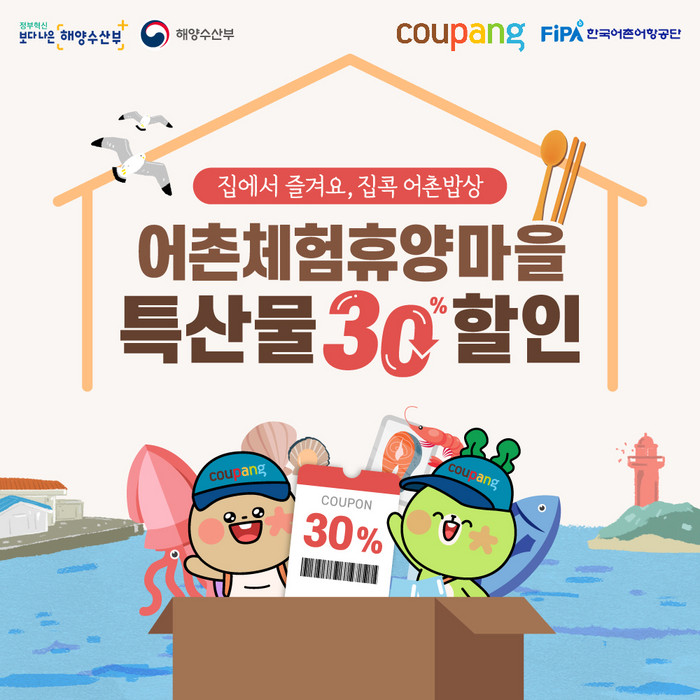 쿠팡이 해양수산부와 손잡고 설 명절 소비자 장바구니 부담을 줄이고, 어촌 특산물의 판로를 키운다. 쿠팡은 오는 2월 28일(일)까지 한달 동안 ‘어촌체험휴양마을 특산물 30% 할인행사’를 진행한다고 밝혔다.