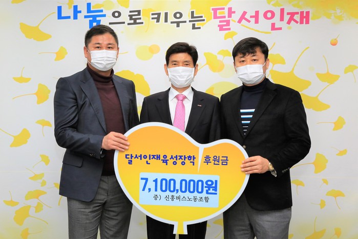 신흥버스(주) 노동조합은 1994년 설립된 조합으로 조합원 167명이 한 해 동안 십시일반으로 모은 710만원을 어러운 환경의 지역 인재를 위해 써달라며 달서구에 후원금으로 전달했다.