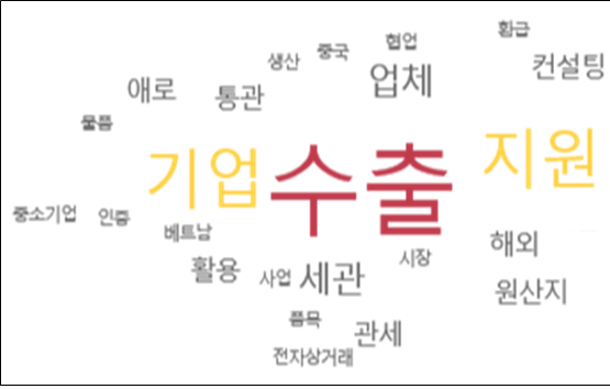 분석 결과 ‘수출’·‘기업’·‘지원’ 단어가 월등히 많았다.