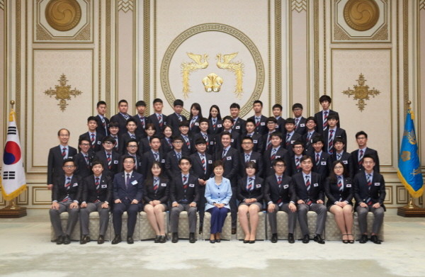 박 대통령은 이날 19번째 종합우승과 5연패라는 성과로 전 세계에 기능강국 코리아의 이미지를 다시 한 번 각인시킨 국가대표선수단을 격려해 그동안의 노고를 치하했다.