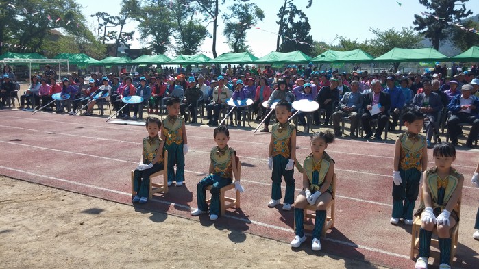 ▲25일 여수시 화양면 나진초등학교 운동장에서 열린 제11회 화양면민 한마음체육대회에서 나진어린이집 원생들이 재롱이 공연을 펼치고 있다. ©로컬세계 |