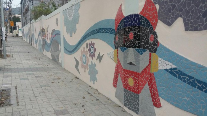 [로컬세계 맹화찬 기자]부산 금정구(구청장 원정희)는 행복마을 만들기 사업으로 회동도래마을 금사공단 일원에 로봇을 디자인 한 타일벽화를 조성했다고 17일 밝혔다.