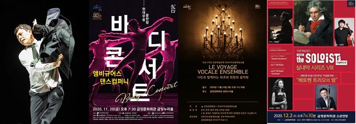 부산시 지정 전문예술단체 ‘르보야즈보칼레앙상블’이 준비한 ‘시민과 함께하는 위로와 희망의 음악회’가 11월 24일 금정문화회관 대공연장에서 펼쳐지며, 올해로 17년의 역사를 자랑하는 금정문화회관의 대표 음악 프로그램 '금정수요음악회'가 11월, 12월 새롭게 리모델링된 소공연장(은빛샘홀)에서 선보여진다.