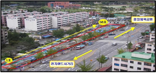철거되는 풍물거리에는 광로50m 도로와 인도가 개설돼 차량 소통이 원활해지는 것은 물론 중앙체육공원 일원의 도심환경을 깨끗하게 만들 것으로 시는 기대하고 있다.