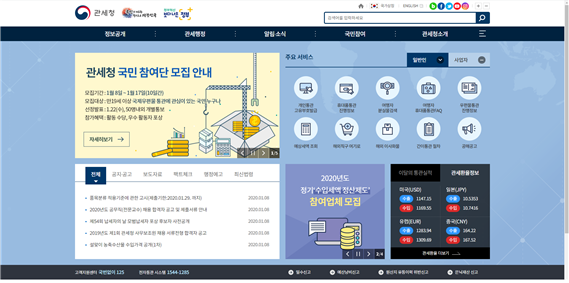 전면 개편된 누리집은 관세행정, 국민참여, 알림소식 등 사용자 관점으로 메뉴 체계를 단순화하고, 통합검색 기능을 강화했다.
