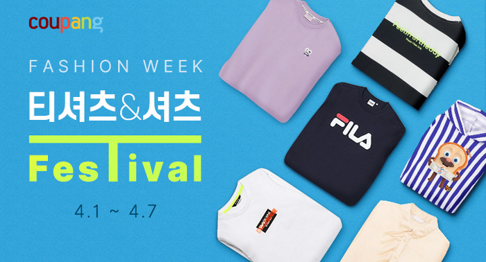 패션위크는 쿠팡이 매달 첫 주 테마를 선정해 일주일간 패션 트렌드 및 할인 상품을 제안하는 패션 주간 할인 이벤트로, 이달의 테마는 ‘티셔츠& 셔츠 페스티벌’이다. 이번 행사에서는 티셔츠, 셔츠는 물론 티셔츠나 셔츠 함께 코디하기 좋은 상품을 제안한다.